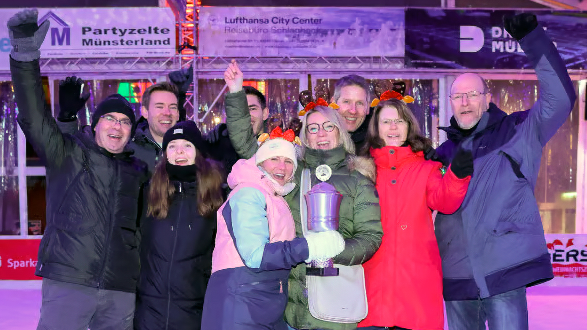 Exakt 14 Tage nach ihrem Turniererfolg beim ConIT-Eisstock-Masters jubelte die Mannschaft der „Eisigen Rentiere“ ein zweites Mal auf der Eisbahn. Bei den IDU-Stadtmeisterschaften im Eisstockschießen holte sich das Team am Samstagabend durch einen Endspielerfolg gegen „Die vier ohne Namen“ zum ersten Mal den Pokal.